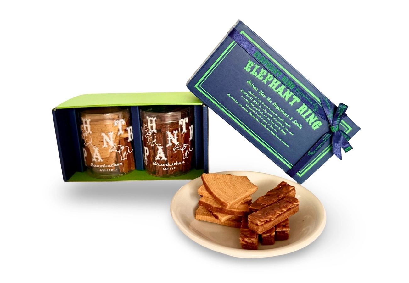 エレファントリングのお菓子とオリジナルマグ、プレートをセットにした商品です。
