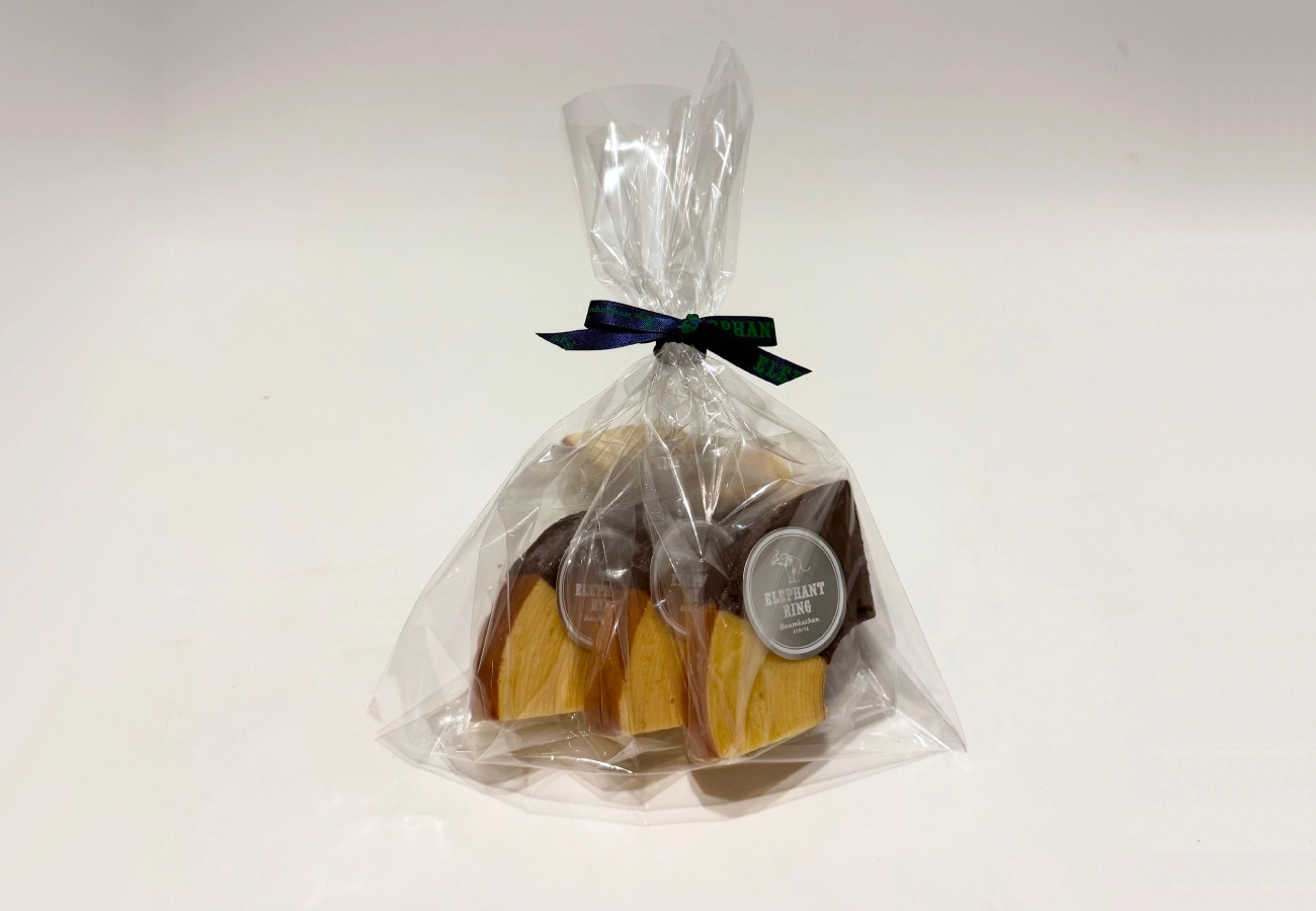 1/4カットのバウムクーヘンを個包装にしたセットになります。